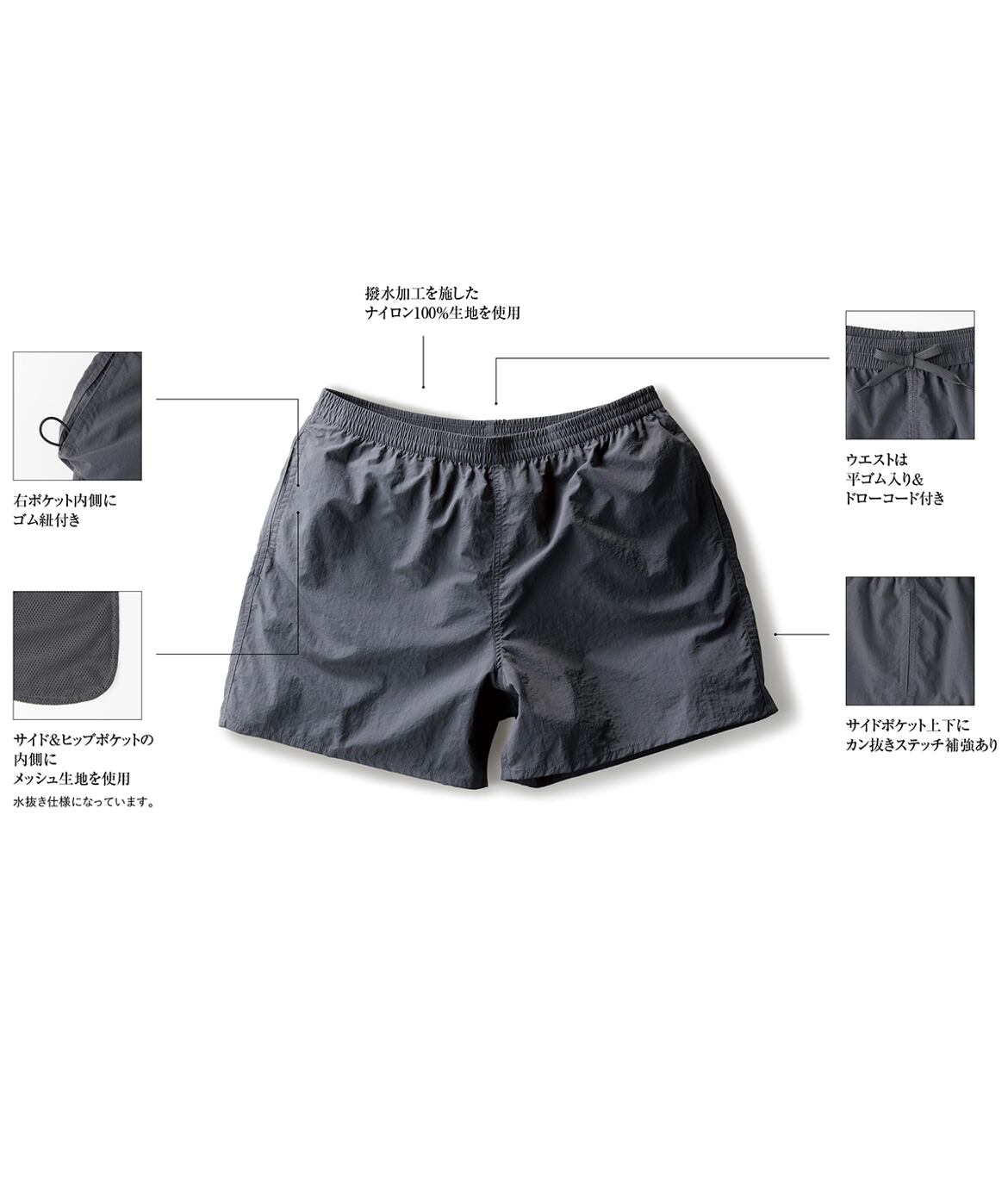 ▷サイド&ヒップポケットの内側にメッシュ生地を使用(水抜き仕様になっています)